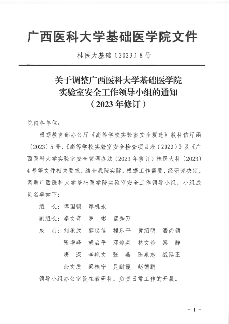 关于调整伟德betvlctor1946源于英国实验室安全工作领导小组的通知(2023年修订)
