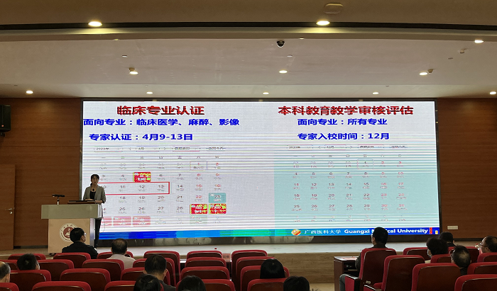 会上,罗彬副院长围绕临床医学专业认证与本科教育教学评估的区别、新一轮审核评估主要类型、准备评估材料、入校评估主要方式、专家组现场考查的目的和内容、前期临床医学专业认证工作中院内自查存在的问题等几大方面内容作了讲解和工作部署。