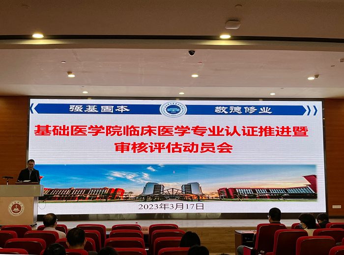 3月17日下午,伟德betvlctor1946在卓越楼21楼报告厅召开临床医学专业认证推进暨本科教育教学审核评估动员会,学院领导班子成员及全体教职工参加本次会议,会议由蓝秀万副院长主持。