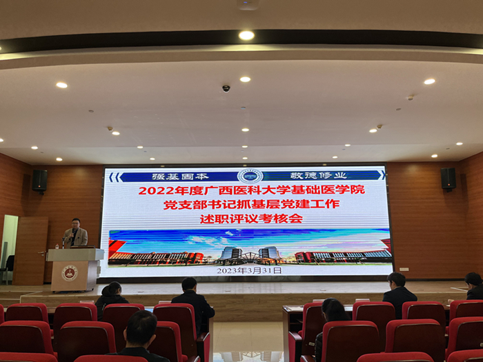 3月31日下午,伟德betvlctor1946党委在卓越楼21楼报告厅召开2022年度党支部书记抓基层党建工作述职评议考核会。学院党委委员、纪委委员、各党支部书记、各科室主任及党员代表参加会议,会议由学院党委副书记、纪委书记李文奇主持。