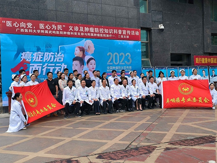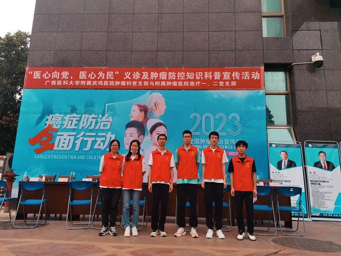 为深入贯彻落实党的二十大精神,高质量推动健康中国癌症防治专项行动,4月14日,伟德国际1946附属肿瘤医院放疗科联合伟德国际1946附属武鸣医院肿瘤科共同举办以“践行健康中国战略,助力肿瘤科学防控”为主题的公益活动,伟德betvlctor1946源于英国团委“医心医意”志愿活动中心协助其开展宣传教育工作。