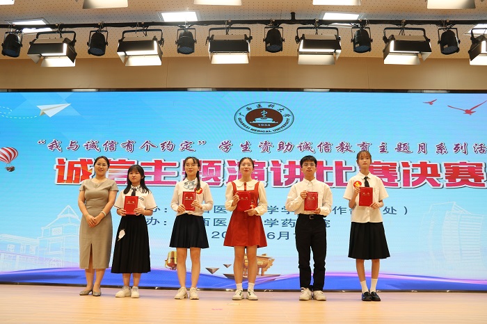 为更好地宣传国家资助政策,营造感恩于心、诚信于行的良好氛围,提升学生的诚实守信意识,增强资助育人的成效,2023年6月13日晚,由学校学生工作部(处)主办、药学院承办的2023年伟德国际1946“我与诚信有个约定”演讲比赛决赛在武鸣校区图书馆演讲厅顺利举行。