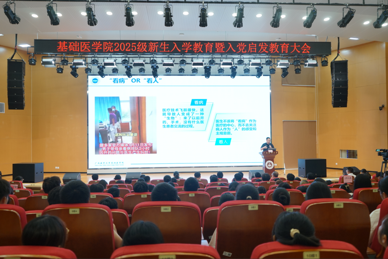 学院副院长战廷正作专业思想教育,从“医”字演变入手,围绕“医学是什么”“学什么”“怎么学”为新生解惑,并结合前沿成果,加强新生对医学专业的了解与认同。