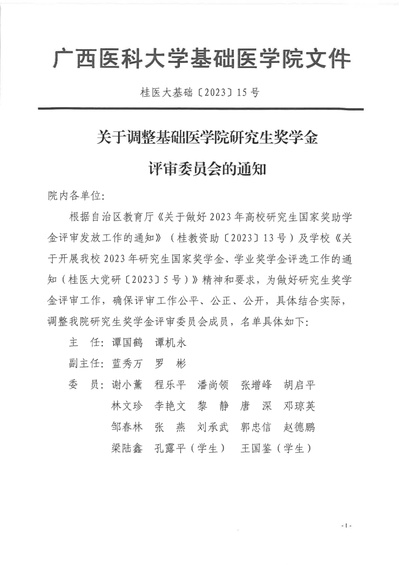 关于调整伟德betvlctor1946研究生奖学金评审委员会的通知