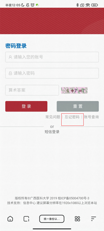 2.“电子离校单”查看路径:“毕业手续单(即红单)”办理完成后,在手机端浏览器(不要使用360浏览器)输入网址http://swzx.gxmu.edu.cn/ydlx,登录“毕业生离校系统”,账号为本人学号,首次登录默认密码为“Gxykdx#身份证后六位”(如忘记密码,可采用短信登录或者点击“忘记密码”进行密码重置,见图2);登录后查看【领证状态】显示为【可领取】(见图3)方可领取毕业证书和学位证书(其中“离校备案”项目如显示为“未办理”无影响,可正常领证);如显示为【不可领取】(见图4),请携带相应材料到相关部门进行审核。